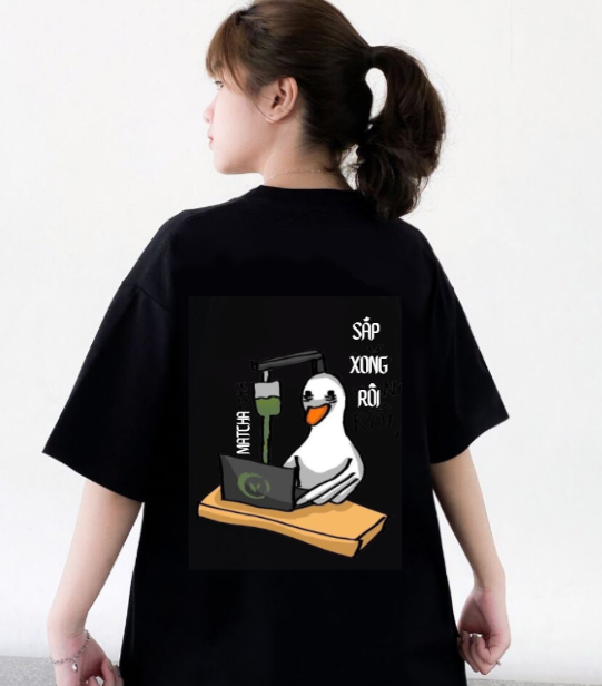 | Áo thun tông đen cá tính, phối họa tiết vịt nổi bật tạo điểm nhấn hài hước. Form rộng, tay lỡ phù hợp phong cách streetwear năng động. Vải cotton mịn, thấm hút mồ hôi tốt, phù hợp với khí hậu Việt Nam. Phối cùng quần short hoặc jogger đều rất hợp gu giới trẻ. |
